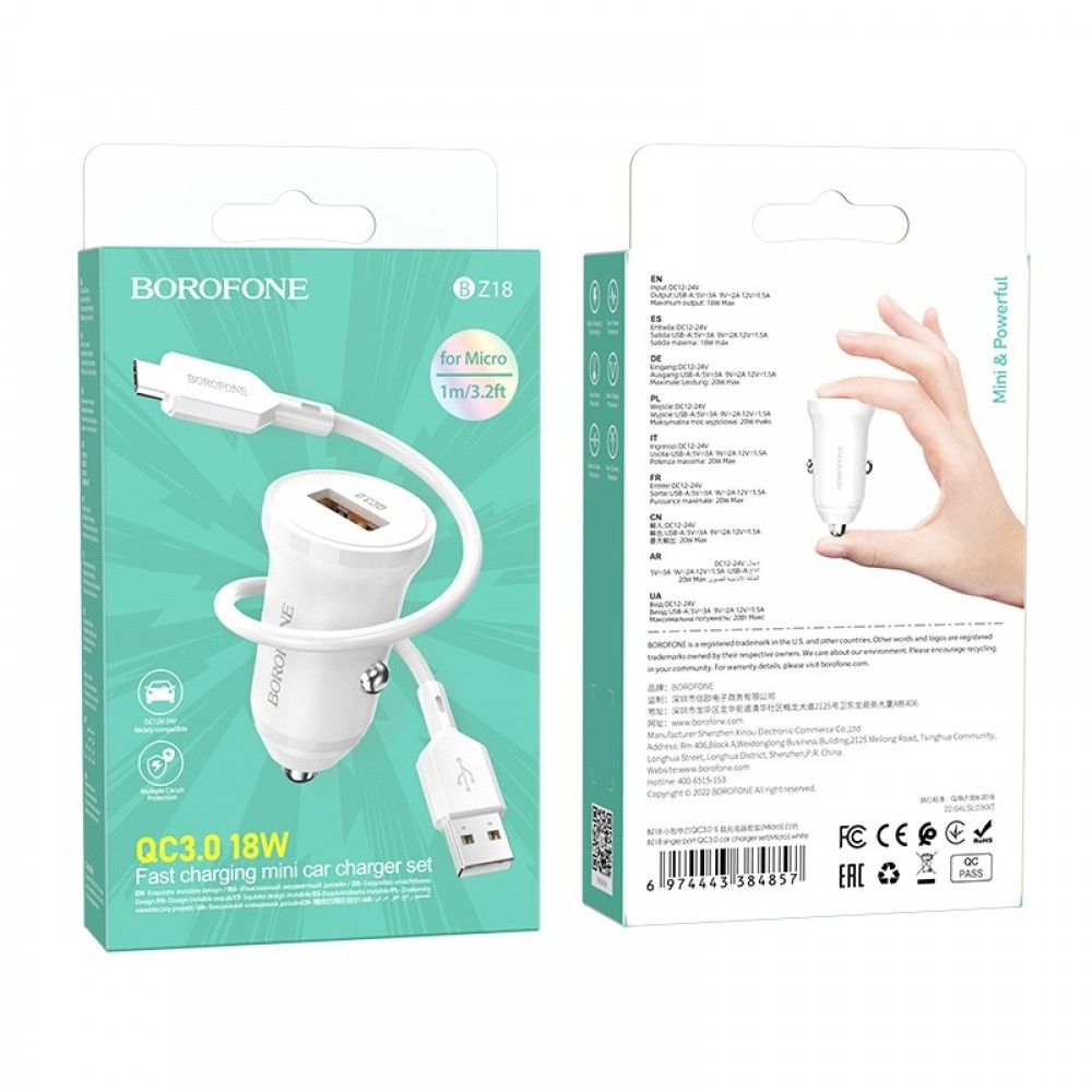 Automobilinis įkroviklis Borofone BZ18 Quick Charge 3.0 18W + MicroUSB baltas - Papildoma Informacija
