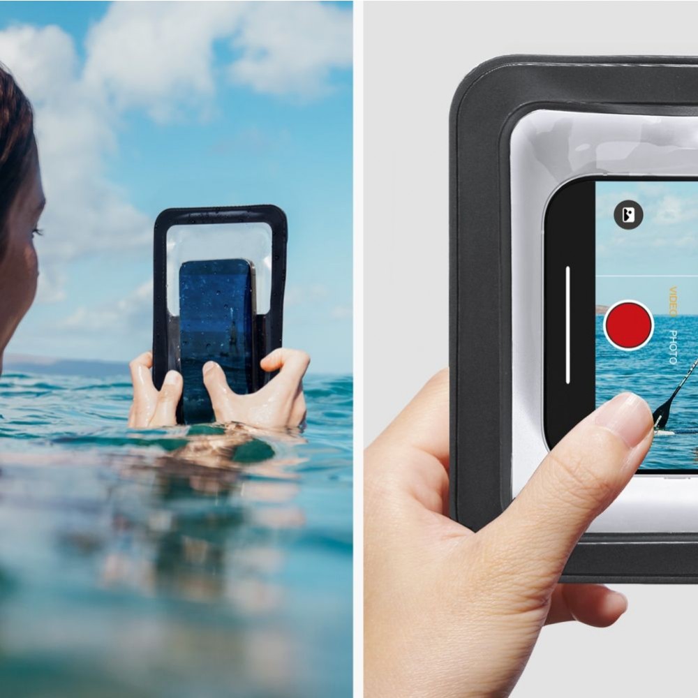 Universalus, vandeniui atsparus dėklas, puikiai tinkantis neįprastoms atostogų situacijoms.